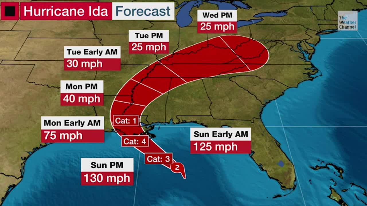 Ida could slam into Louisiana as a devastating Category 3 hurricane with winds up to 120 mph by Sunday afternoon or evening forecasters said. Along with reaching land it is expected to bring major storm surges and flooding along with it.